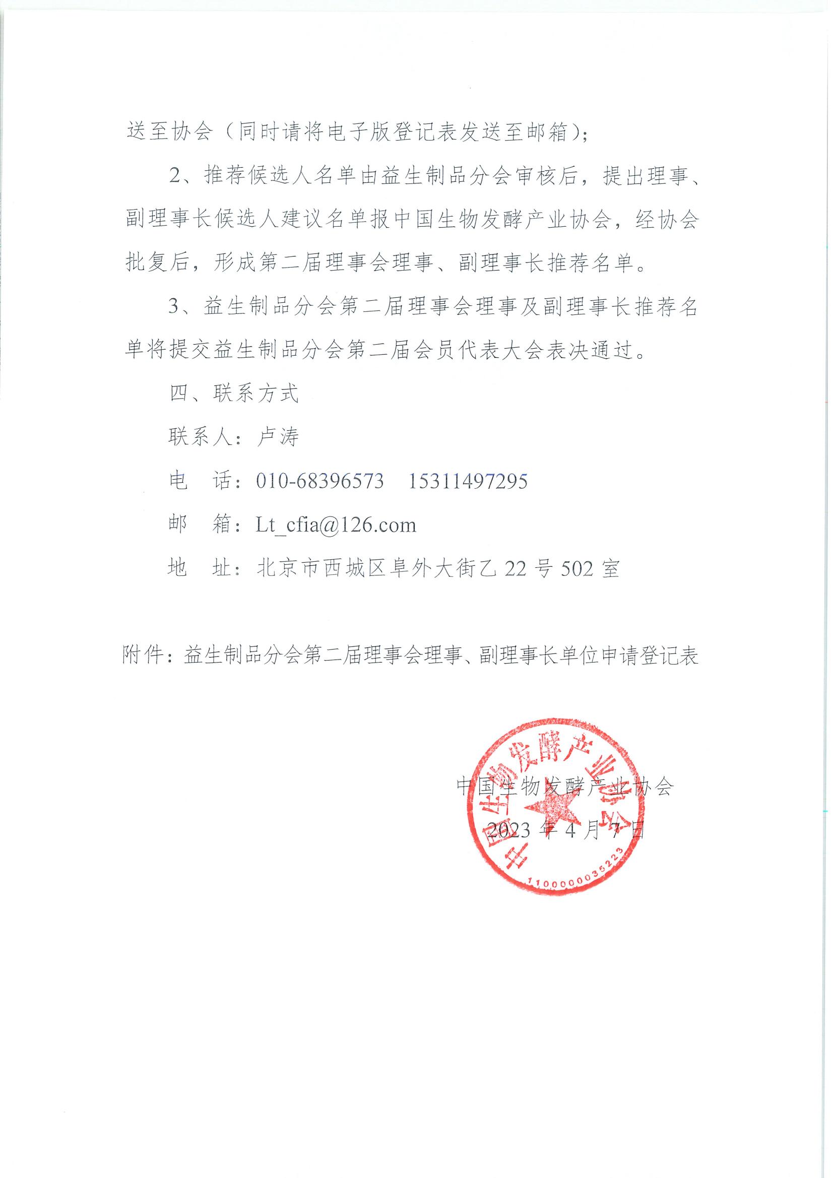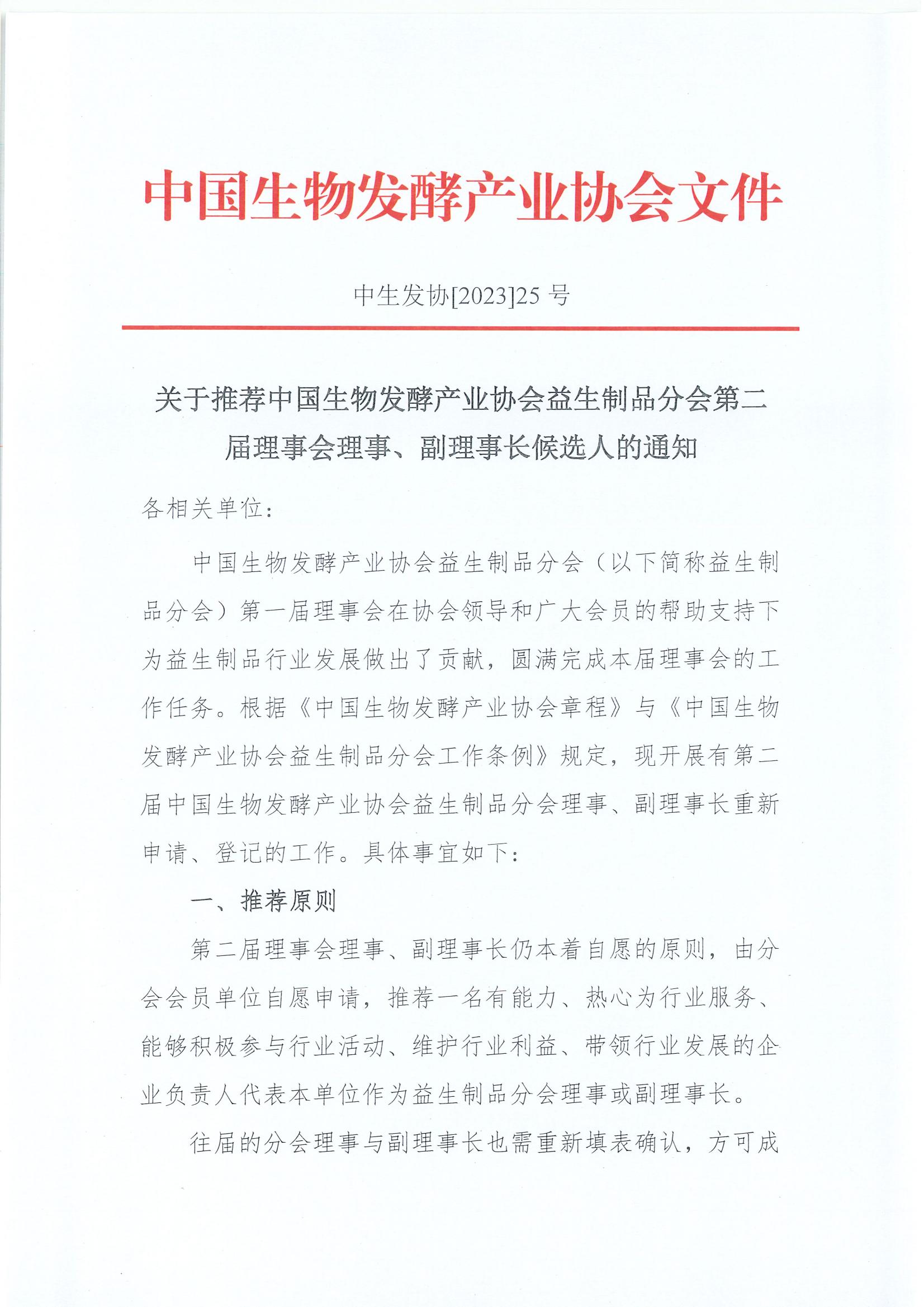 關(guān)于推薦中國生物發(fā)酵產(chǎn)業(yè)協(xié)會益生制品分會第二屆理事會理事、副理事長候選人的通知---修改