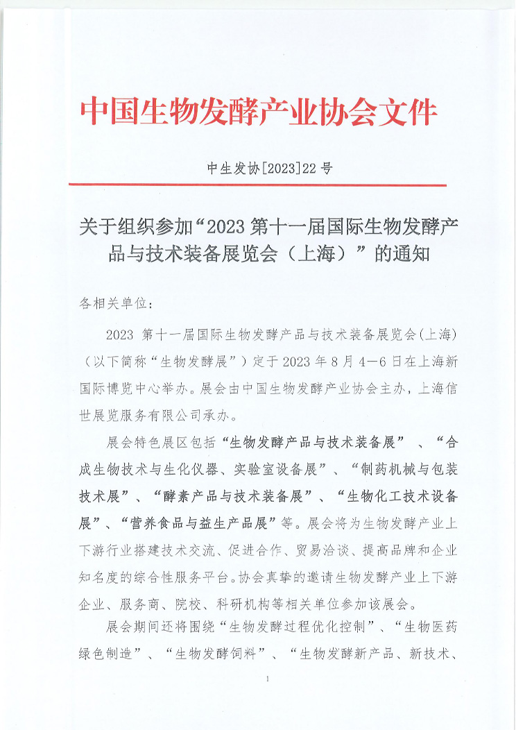 關于組織參加“2023第十一屆國際生物發(fā)酵產品與技術裝備展覽會(上海)”的通知