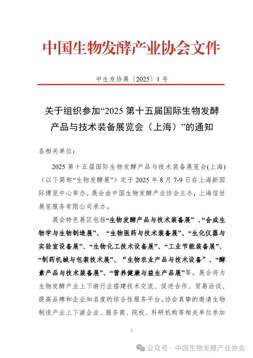 關(guān)于組織參加“2025第十五屆國(guó)際生物發(fā)酵產(chǎn)品與技術(shù)裝備展覽會(huì)(上海)”的通知