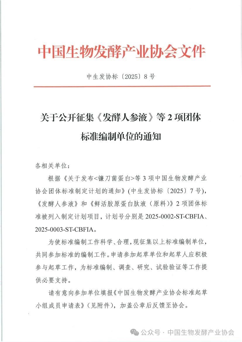 關(guān)于公開征集《發(fā)酵人參液》等2項(xiàng)團(tuán)體標(biāo)準(zhǔn)編制單位的通知